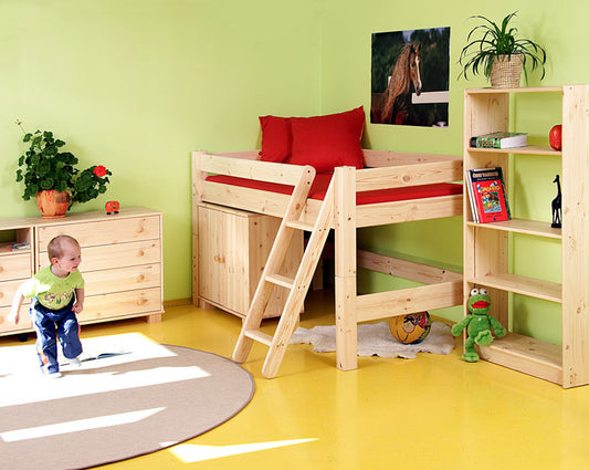 Lahe - Poolkõrge voodi kaldredeliga - 90x200 cm - Naturaalne lakitud