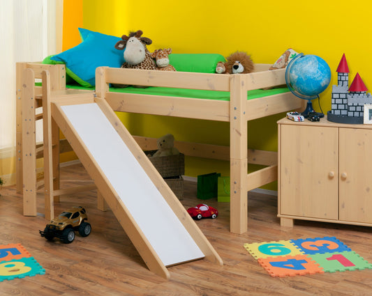 Lahe - Poolkõrge voodi liumäe ja platvormiga - 90x200 cm - Naturaalne