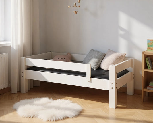 Lahe - Voodi seljatoe ja turvapiirdega - 90x200cm - Valge