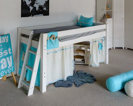 Lahe - Poolkõrge voodi kaldredeliga otsast - 90x200cm - Valge