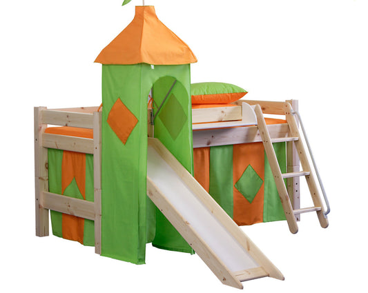 Lahe - Poolkõrge voodi kaldredeli ja liumäega - 90x200 cm - Naturaalne