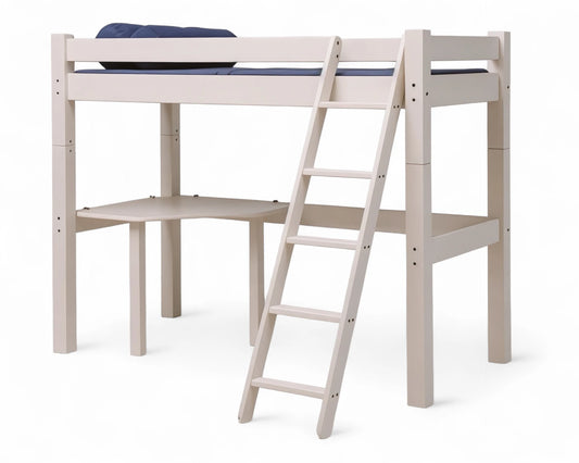 Lahe - Kõrge voodi kaldredeli ja nurgalauaga - 90x200cm - Valge