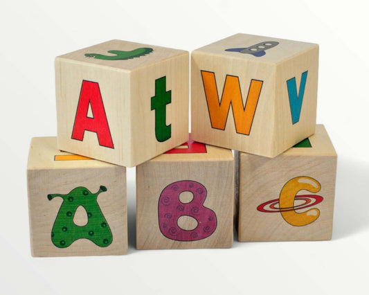 Holz-Alphabet- und Zahlenblöcke – 36 Stück
