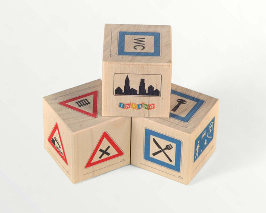 Holzbild-Blöcke - Verkehrsschilder - 12 Stk.