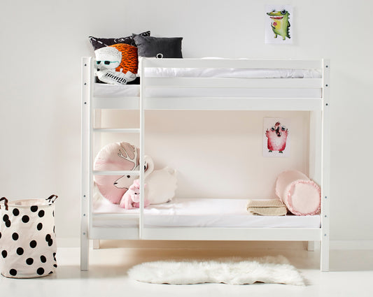 Lahe - Bunk bed with straight ladder - 90x200 cm - White