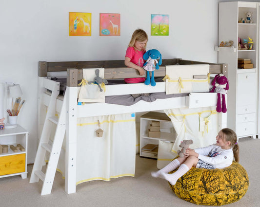 Lahe - Kõrge voodi kaldredeliga - 90x200cm - Valge