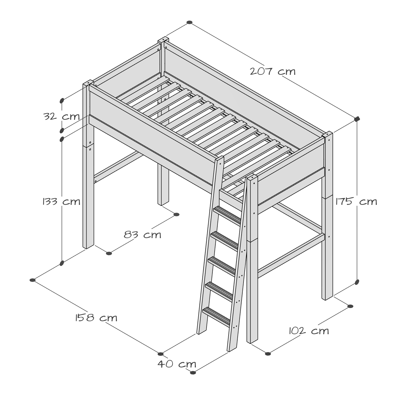 - Voodi mõõtmed: (pikkus x kõrgus x laius): 207x175x124 cm
