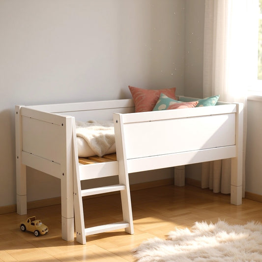 Jerwen - Kompakti sänky turvakaiteella ja tikkailla - 70x160 cm