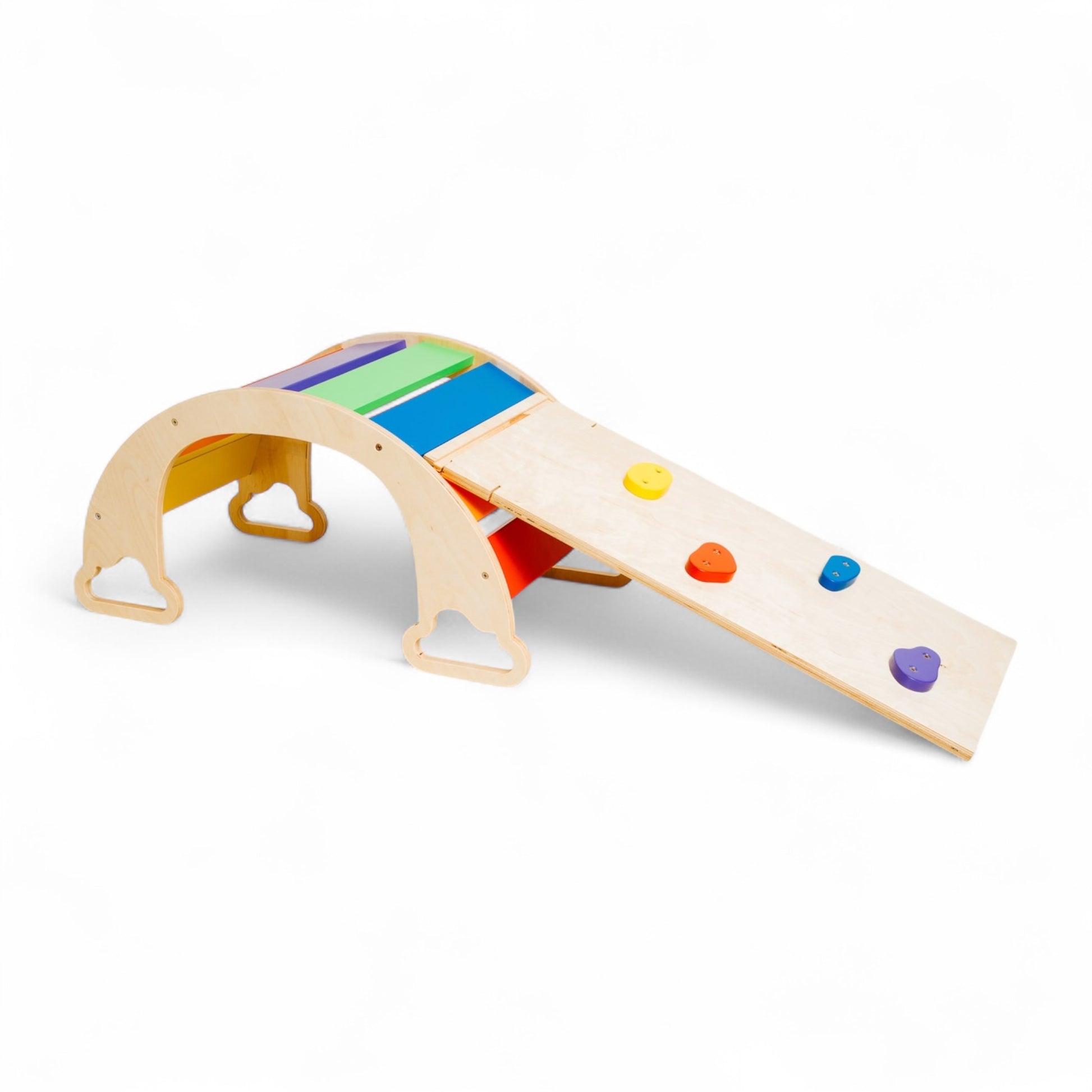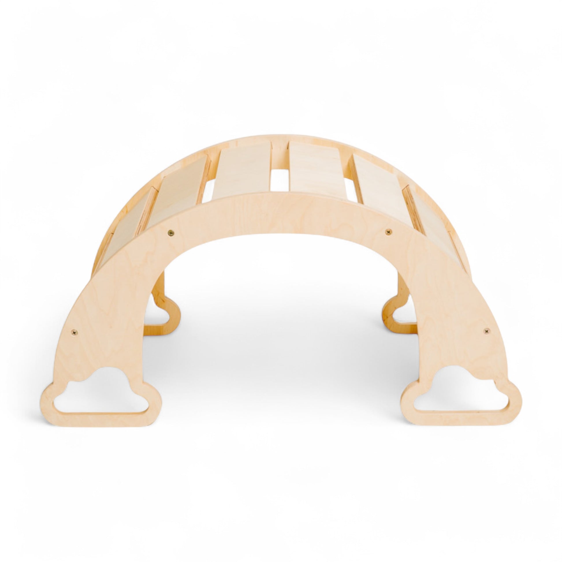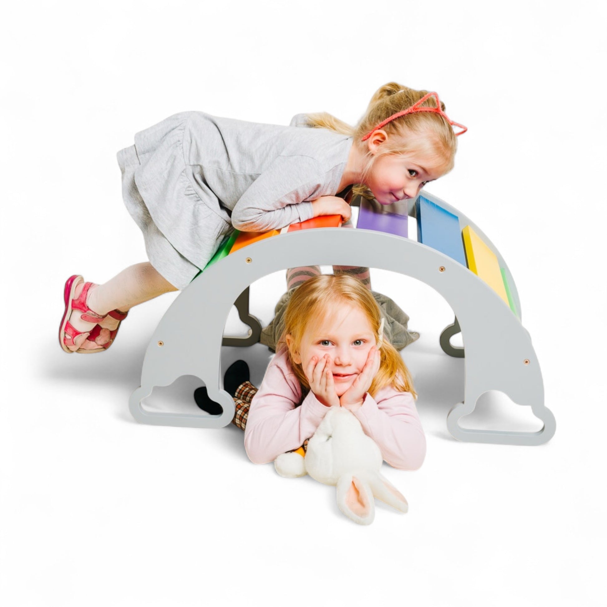 Climbing Arch ir daudzpusīga un aizraujoša rotaļlieta, kas iedvesmo radošumu, iztēli un aktīvu spēli. To var izmantot dažādos veidos: bērni var lēni vai ātri šūpoties, pārkāpt pāri, izslīdēt cauri vai pat izmantot to kā skaitītāju lomu spēlēm. Šī daudzfunkcionālā rotaļlieta atbalsta gan kognitīvo, gan fizisko attīstību, nodrošinot stundām ilgu prieku.